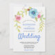 Elegant Boho Blue Pink Rose Floral Arch Wedding Invitation