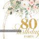 Elegant Boho Blush Roses 80th Birthday Invitation