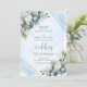 Elegant Boho Dusty Blue Silver Flowers Wedding Invitation