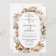 Celebrate your love with this elegant boho wedding invitation featuring soft blush and neutral-toned peonies, pampas grass, and dried florals surrounding a modern arched frame. The refined script and serif fonts bring timeless romance to your special day, making it perfect for fall or rustic-themed weddings.
