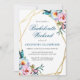 Soft blue, pink, and white boho watercolor flowers within a gold double geometric frame feature botanical and berry flourishes. Customise this elegant boho floral bachelorette weekend itinerary invitation with your own colours and fonts or keep this popular typography as it is for your convenience. MIx and match with other items in this beautiful wedding collection.