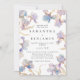 This elegant wedding invitation is perfect for spring and summer weddings. This design features a ring of watercolor irises in shades of lilac and periwinkle blue. Subtle touches of gold add a glistening, magical element.