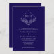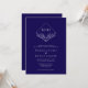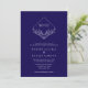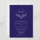 Elegant Boho Leaf Monogram Dark Blue Wedding Invitation