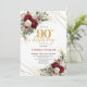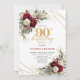 Elegant Boho Maroon White Roses Gold 90th Birthday Invitation