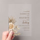 These stunning invitations are crafted on luxurious acrylic, creating a modern and sophisticated look. Delicate Boho Neutral Floral Accents are artfully arranged on a transparent background, casting a captivating glow. The soft, romantic tones and unique acrylic material make these invitations truly one-of-a-kind.