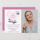 Elegant Boho Pink Floral Photo 63rd birthday Invitation Boho Photo vintage flowers watercolor