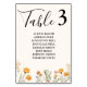 Elegant Boho Weadow Ivory Wildflower Wedding Table Number