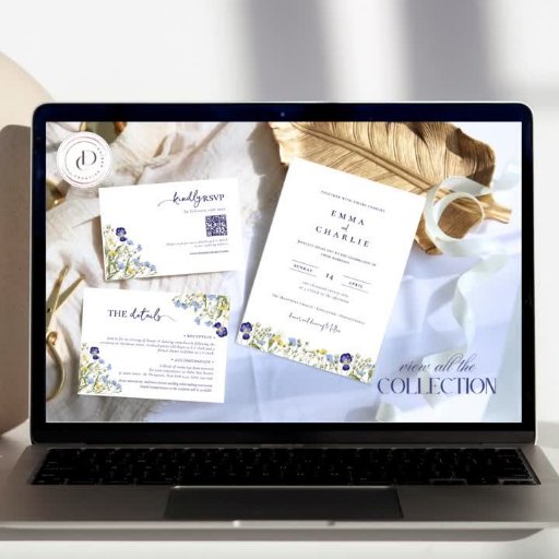 Elegant Boho Wildflowers blue Script Wedding Invitation to customise in few easy steps!
