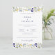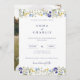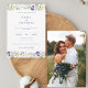 Elegant Boho Wildflowers blue Script Wedding Invitation with photo of the couple on the back of the card to customise in few easy steps!