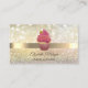 Elegant stylish business card with cupcake and gold stripe on bokeh background.