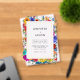Design features fun bright watecolor roses and peonies with yellow gold square border. Simple classic contemporary font typography.