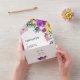 I love this all in one wedding invitation design and we were able to save money since we did not need to buy envelopes. We placed the clear stickers on each side to hold down all 3 layers to keep the folded invitation from gapping open. The only improvement I can think of is making the clear stickers a little more sticky to make sure the invitation does not pop open. We also used a wax seal on the pointed area of the invitation that resembles the envelope, which helped keep the invitations closed also. The flowers on the print are beautiful bright colors!