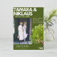 An elegant, bold, simple white on forest green slavic photo wedding invitation with a modern bold font, a photo and rsvp details at the back with qr code