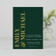 A simple minimal wedding invitation featuring elegant bold typography gold foil names, emerald green colour and contemporary design.
