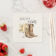 Celebrate the bride-to-be with this charming Boots & Bubbly bridal shower napkin, where rustic meets elegance. Featuring a pair of watercolor cowboy boots and a champagne glass blooming with cream florals, this simple yet sophisticated design sets the tone for a stylish celebration. Perfect for country-chic or western-themed showers with a bubbly twist!