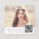 Show off a favourite shot on these modern square business cards for photographers or photography professionals. Design features two lines of custom text beneath your photo in slate blue grey lettering, along with a customisable QR code. Add your full contact information on the reverse side.