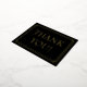 This elegant foil thank you card design features the message “THANK YOU” on the front, along with a triple-line border. The back features a customisable message of gratitude. Thank you cards like these might be used to send thanks to the guests at a wedding, a party, or some other event.