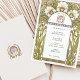 This sophisticated wedding invitation is inspired by the timeless Art Nouveau style, featuring intricate floral details, arch motifs, and elegant botanical patterns. Decorated with soft pastel tones, golden hues, and artistic illustrations, this design evokes a romantic and vintage aesthetic. Perfect for weddings with a refined, nature-inspired, or vintage theme. A matching crest completes the look on the back, ensuring a cohesive and luxurious presentation. A stunning choice for couples seeking classic artistic beauty for their big day.