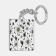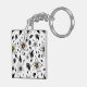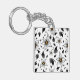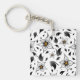 Elegant Botanical Black and White Floral Pattern Key Ring