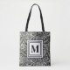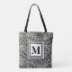 Elegant Botanical Black and White Monogrammed Tote Bag