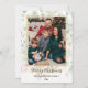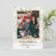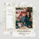 Share your holiday joy with this elegant botanical Christmas family photo card, featuring a soft watercolor frame of eucalyptus leaves, pine branches, and delicate pastel berries. The front showcases your family photo surrounded by festive greenery, paired with refined gold accents for a warm seasonal touch. The greeting is styled in a classic serif font for a timeless look, while names and year are displayed in an elegant, all-caps typeface that complements the design’s sophisticated feel. The back offers space for a heartfelt holiday message in a graceful script font, adding a personal, handwritten charm. Customise with your family photo, names, year, and personal greeting to create a unique keepsake for friends and loved ones. Perfect for spreading warmth, love, and festive cheer this Christmas and New Year.