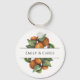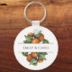 Pretty, elegant, modern and bohemian personalised and custom wedding button keychain for your special occasion! The design matches with the rest of the Orange Leaf Foliage Collection. Watercolor orange fruit with dark and light green leaves leaf foliage side border frames the top and bottom of your names.