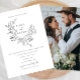 This elegant black and white botanical wedding invitation features a beautiful leafy wedding crest with calligraphy script and custom names on the front, and one full photo on the back of the card. Shop this store for classic coordinating wedding items.