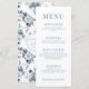 Enhance the charm of your wedding reception with these sophisticated and stylish floral wedding menu cards. Decorated with delicate dusty blue and grey flower bouquets with bride and groom's names showcasing a timeless floral pattern at the back.