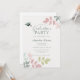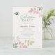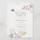 This is an elegant graduation party invitation featuring a botanical theme with soft pastel-coloured leaves in green, pink, and red. The design includes stylish script and serif fonts, giving it a classy and modern touch. A small graduation cap illustration adds a celebratory element. The layout is clean and well-organised, making it perfect for honouring a graduate. Customise for a personal touch!