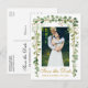 Elegant Botanical Green Photo Gold Save The Date Announcement Postcard