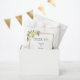 Elegant wedding favour bag is chic and romantic featuring white wedding roses with hints of blush pinks displayed in leafy greenery on a timeless crisp white background. A sparkling golden colour geometric crystal-shaped frame provides a trendy touch. "Thank You for celebrating with us!" is displayed in classic text. The first names of the couple and wedding date are in delicate elegant script & coordinating text. Be sure to see all the matching items in the collection!