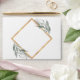 Elegant wedding envelopes to add with your invitations with deep green, sage colour leaves, branches, foliage, greenery - botanical theme. Faux gold foil frame in diamond shape. Perfect for any time of year or wedding theme. Delicate design in watercolor painted leaves. Back of card has bride and groom monograms / initials.