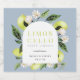 Elegant watercolor botanical lemons, leaves and blossoms arch frame, limoncello beverage label. Template lines for your names and event date.