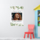 Memorial Print featuring a large photo of the person your remembering, elegant watercolor green botanical eucalyptus leaves, gold floral accents, their name, and birth/death dates.