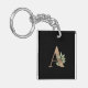 Elegant Botanical Monogram Gold Letter A Key Ring