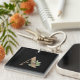 Elegant black keychain with a gold botanical monogram featuring capital A letter in the centre.