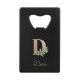 Elegant black bottle opener with a gold botanical monogram in the centre.