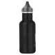 Elegant black water bottle with a gold botanical monogram in the centre.
