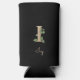 Elegant black can cooler with a gold botanical monogram in the centre.