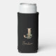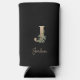 Elegant black can cooler with a gold botanical monogram in the centre.