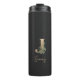 Elegant black thermal tumbler with a gold botanical monogram in the centre.