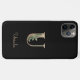 Elegant black phone case features a gold botanical monogram in the centre.