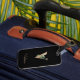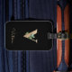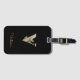 Elegant black luggage tag with a gold botanical monogram in the centre.