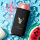 Elegant black can cooler with a gold botanical monogram in the centre.