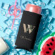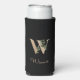 Elegant black can cooler with a gold botanical monogram in the centre.
