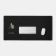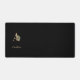 Elegant black desk mat features a gold botanical monogram in the centre.