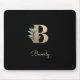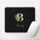 Elegant black mouse pad features a gold botanical monogram in the centre.