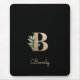 Elegant black mouse pad features a gold botanical monogram in the centre.