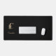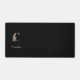 Elegant black desk mat features a gold botanical monogram in the centre.