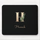 Elegant Botanical Monogram Letter H Mouse Pad